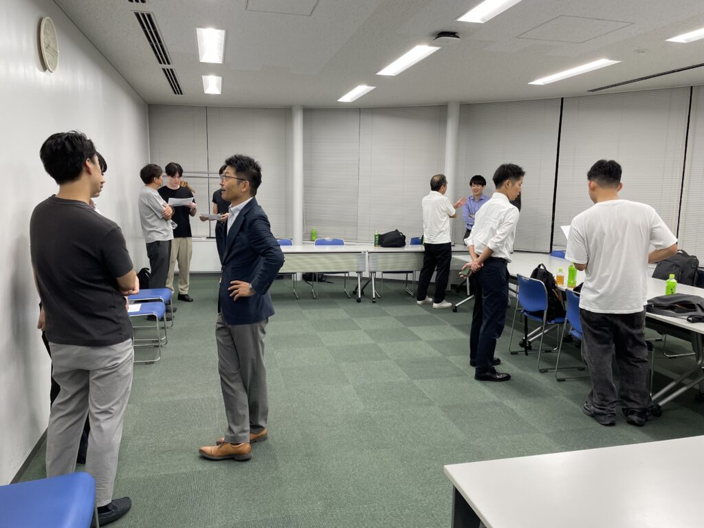 今回、「メディアエンタメ×DX・異業種」をコンセプトに、メディアエンタメ企業とDX事業を展開している企業、その他異業種企業との接点を作り、新しい知見を広げて新規ビジネスのきっかけとすることを目的に実施し、テレビ局、映画会社、新聞社、出版社、アニメIP企業、芸能事務所、外資系コンサル企業などの20代~60代の方19名が参加し、会場内で活発なビジネス交流と情報交換が行われました。